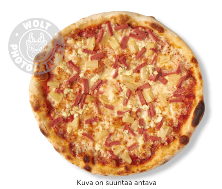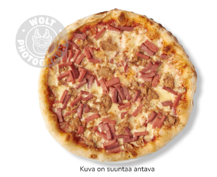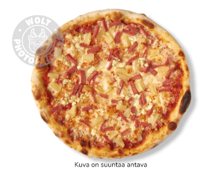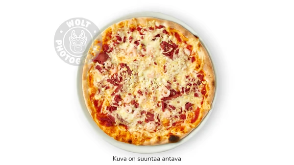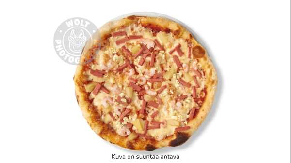 Salami, ananas, katkarapu, aurajuusto, Mozzarella