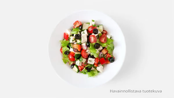 Sis. Salaatti, tomaatti, kurkku ja haluamasi dippi. Kanan alkuperämaa – Thaimaa.