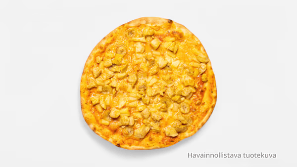 Kana, jauhelihakastike, Salaattijuusto, sipuli, paprika, indian-kastike