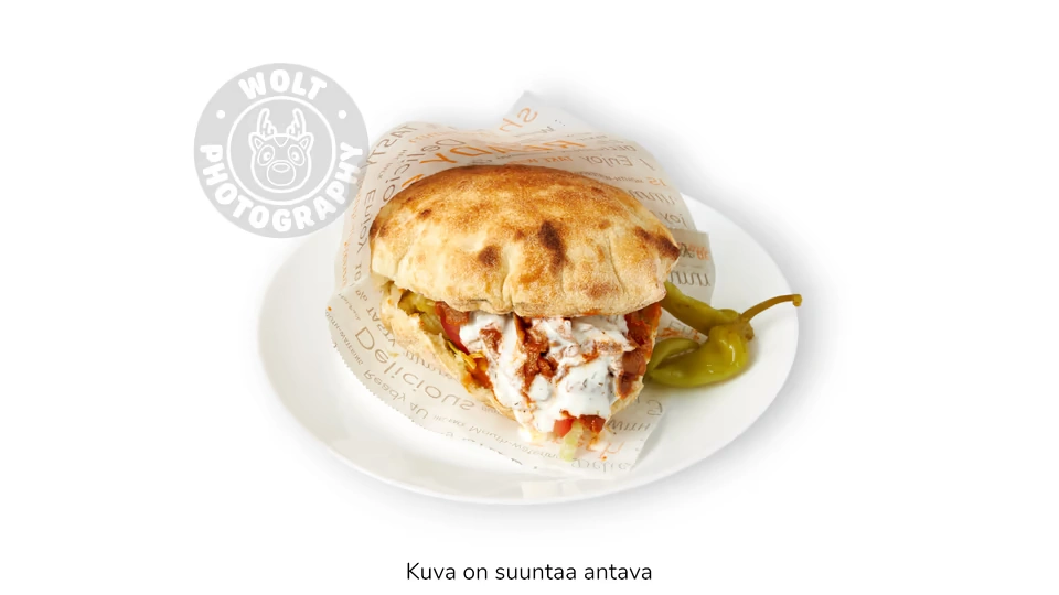 Salaatti, tomaatti, suolakurkku, kebabliha, aurajuusto